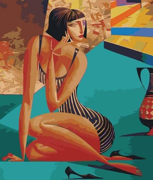 What’s In Woman in a Bathing Suit paint by numbers kit?
